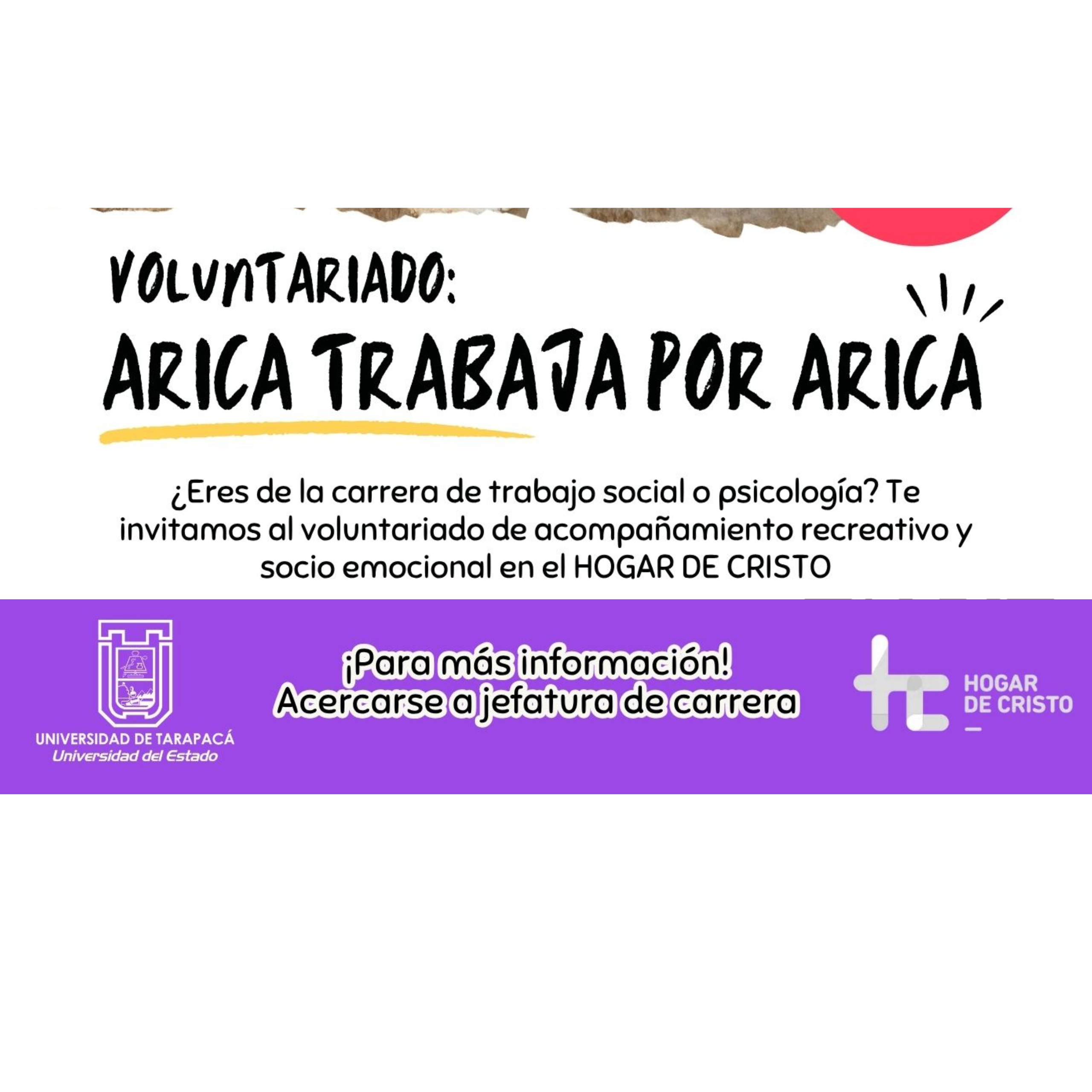 Visibilizar y Fortalecer la relevancia del trabajo social comunitario en estudiantes de las carreras de Psicología y Trabajo social de la Universidad de Tarapacá, a través de iniciativas voluntarias y promocionales de integración social con grupos prioritarios de la ciudad de Arica. * 1era parte: INDUCCIÓN a estudiantes. * 2da parte Voluntariado: “MANOS QUE ACOMPAÑAN: UN ALMUERZO DE ENCUENTRO, AFECTO Y ALEGRÍA” OBJETIVO SESIÓN: Promover la integración social entre jóvenes y adultos mayores del Centro de Encuentro del Hogar de Cristo, generando un espacio de afecto, compañía y recreación que contribuya a la mejora de su calidad de vida. LUGAR: Centro de Encuentro del Hogar de Cristo HORA: de 11:00 a 12:30 hrs. DIRECCIÓN: 18 de septiembre 1080